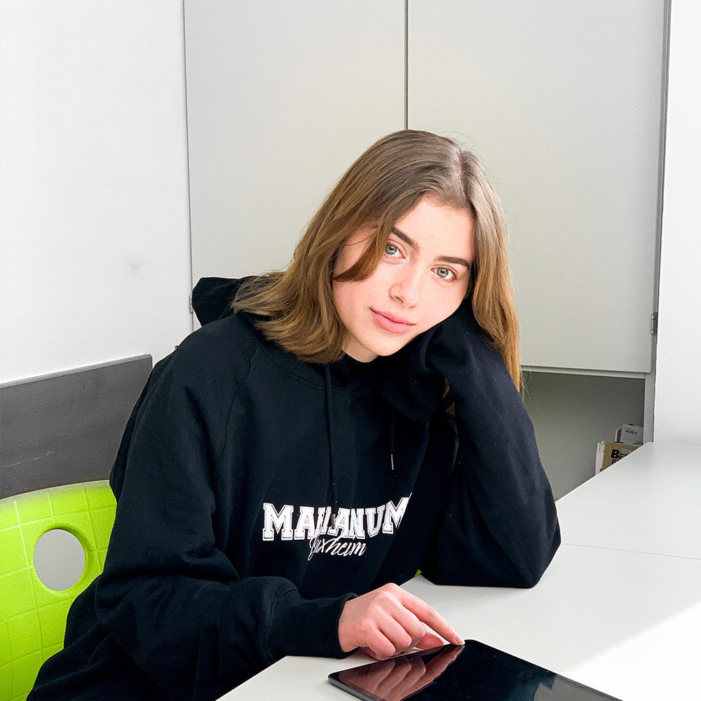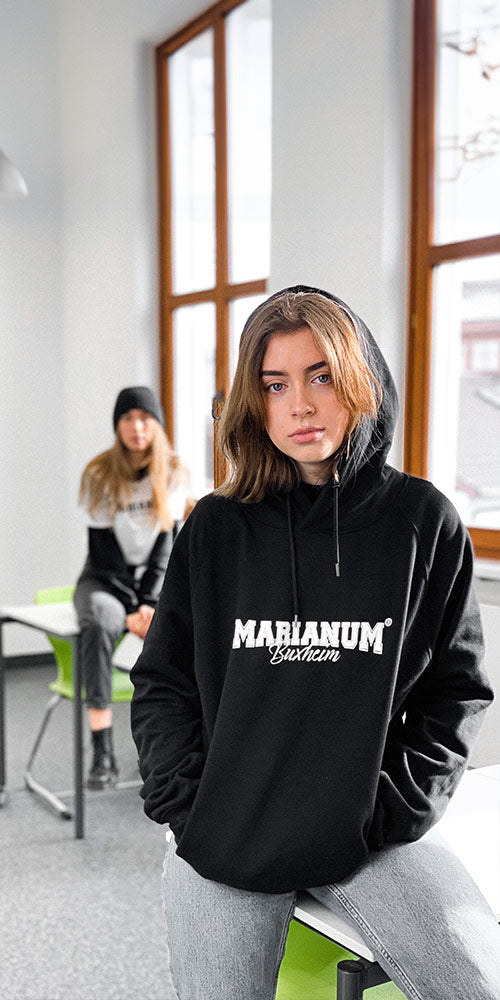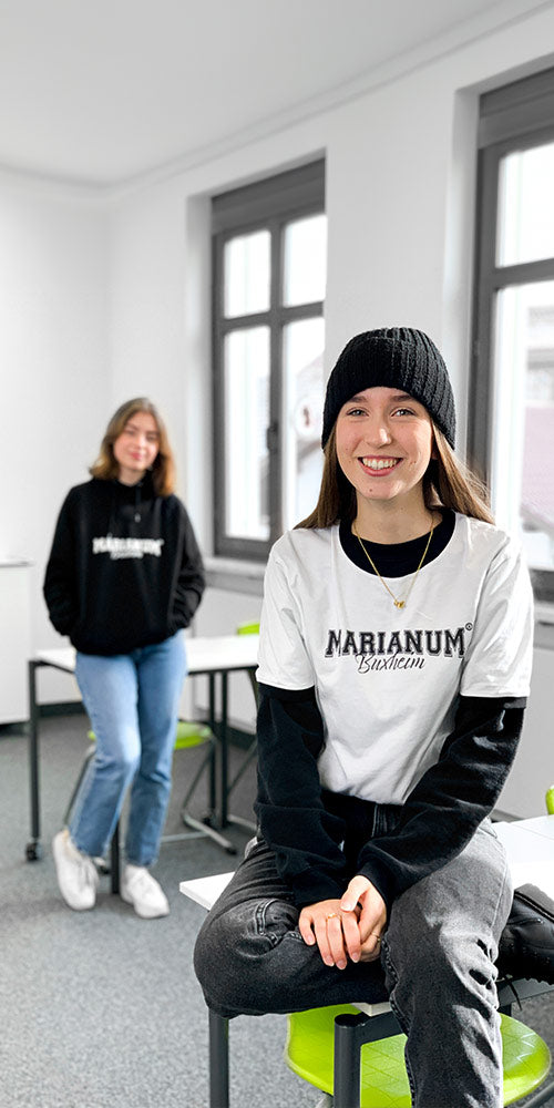 The design was intended to be reminiscent of college and high school merch from the USA. The Marianum logo can be seen on T-shirts and hoodies, accompanied by a handwritten “Buxheim” lettering underneath.