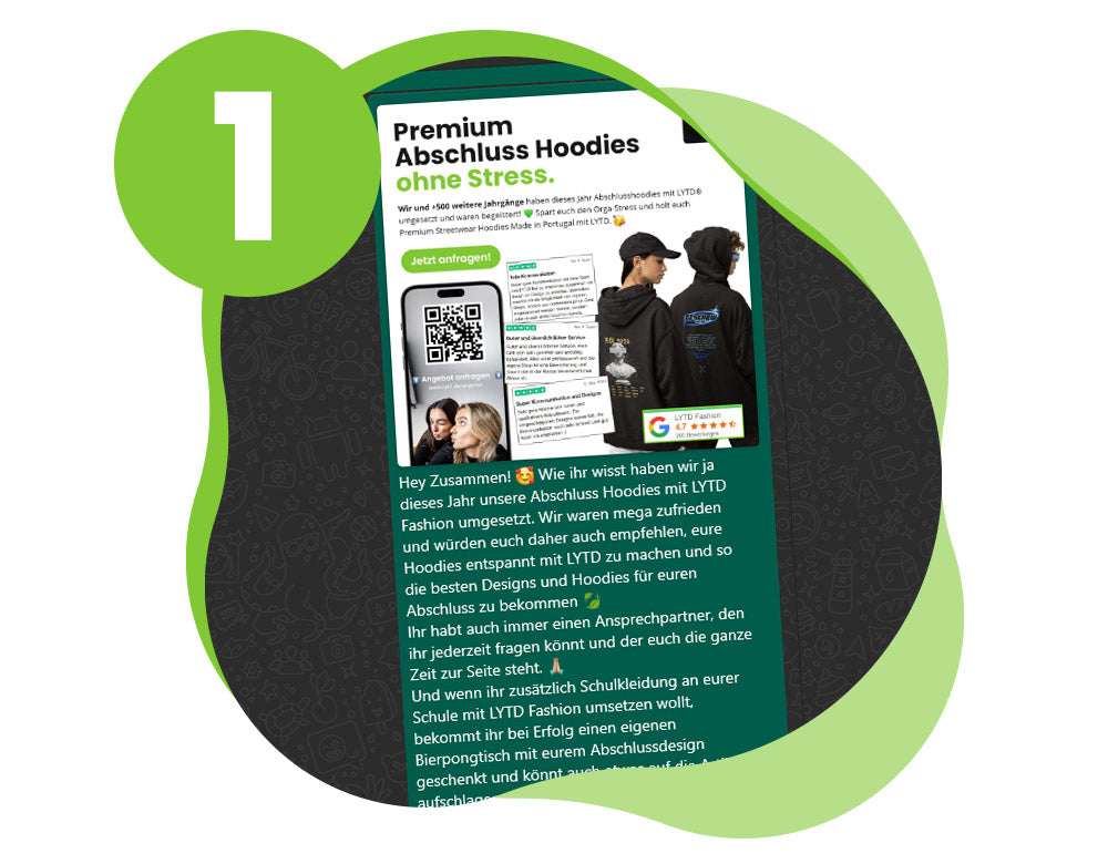 Und wenn ihr zusätzlich Schulkleidung an eurer Schule mit LYTD Fashion umsetzen wollt, bekommt ihr bei Erfolg einen eigenen Bierpongtisch mit eurem Abschlussdesign geschenkt und könnt auch etwas auf die Artikel aufschlagen und so beispielsweise Geld für die Abikasse sammeln. Also fordert einfach ein gratis Angebot an und sagt LYTD, dass wir euch empfohlen haben! 🫶🏼